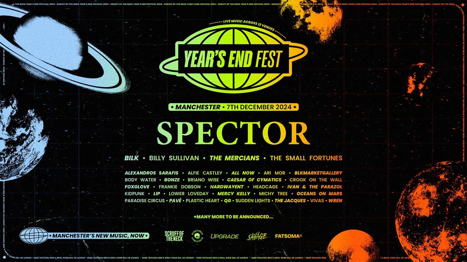 Year’s End Festival, presented by Manchester record label and promoters Scruff of the Neck, is a day-night festival taking over Oxford Road Corridor for one day only across Manchester music institutions, pubs and clubs.