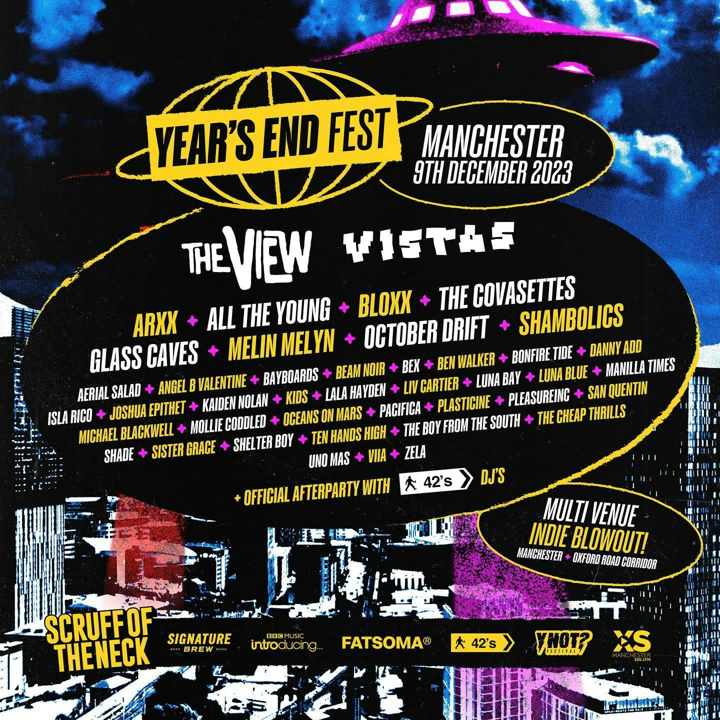 Manchester’s Oxford Road welcomed Scottish headliners The View and Vistas, plus Arxx, Melin Melyn, Shambolics, Bloxx, The Covasettes, Glass Caves, October Drift to a lineup of over 40+ artists.